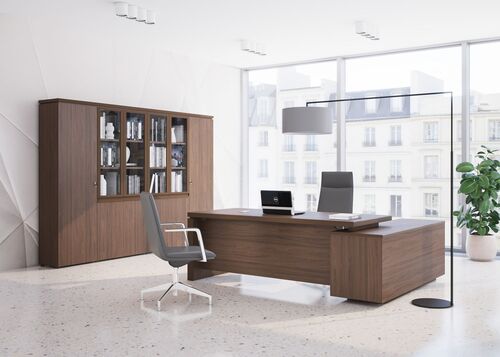 Красиво обставленный кабинет руководителя говорит не только о его безупречном вкусе, но и об отличном положении дел в компании. Обратите внимание на мебель из массива натуральной древесины, которая прекрасно подойдет в офис, подчеркнет высокий статус директора и сразу сделает интерьер элегантным. В интернет-магазине «Правильный офис» можно купить шкафы, письменные столы и другие предметы меблировки из роскошного каталога мебели с доставкой по Москве и России.