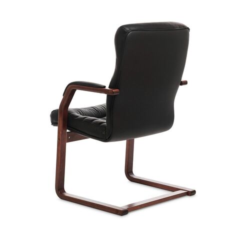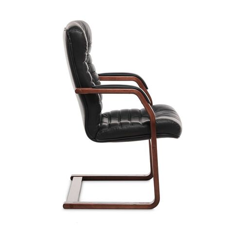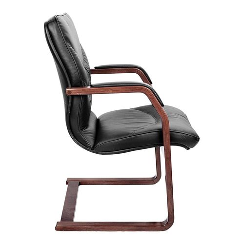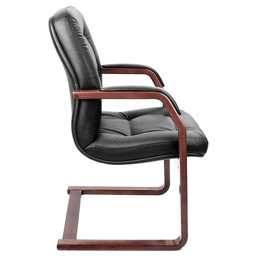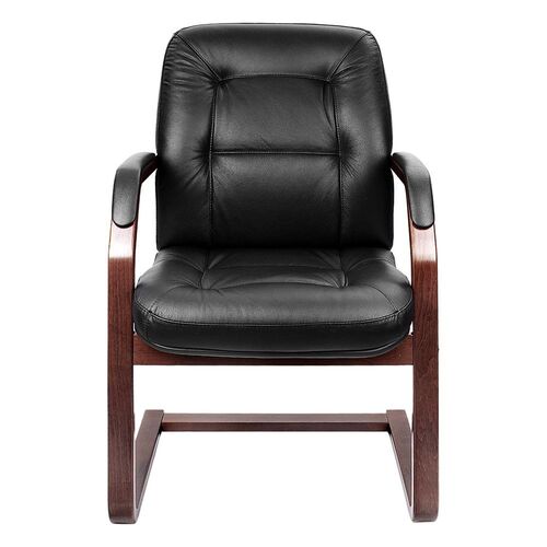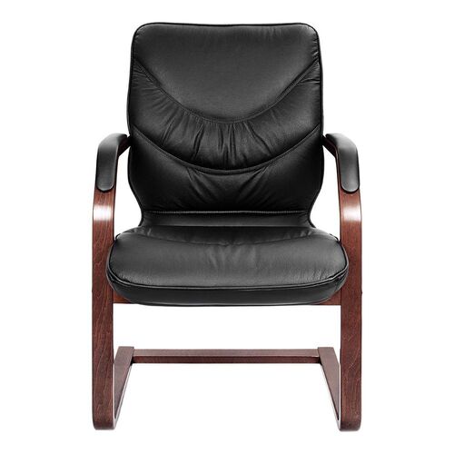 Кресло посетителя LEEDS WOOD C Кожа+компаньон Черная