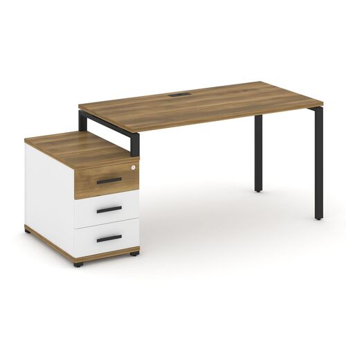 Стол письменный с одной опорной тумбой CN.SP-303 A/B/W Дуб Мали,м/к Черный