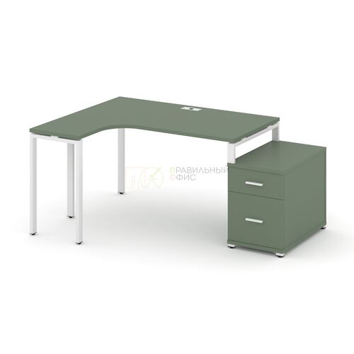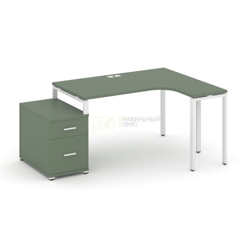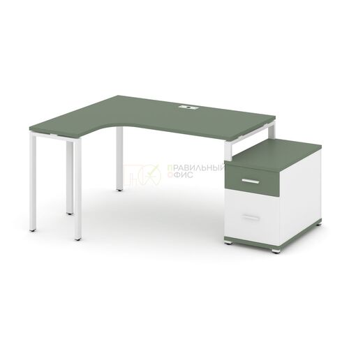 Стол эргономичный правый с опорной тумбой CN.SA-302(R) A/B/W Кобо,м/к Белый