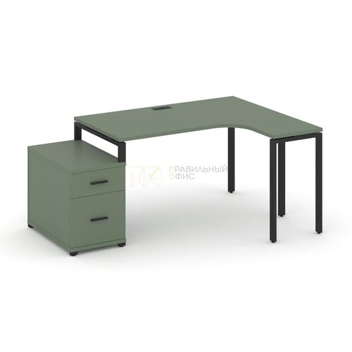 Стол эргономичный правый с опорной тумбой CN.SA-302(R) A/B/W Кобо,м/к Черный