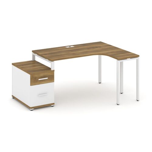 Стол эргономичный правый с опорной тумбой CN.SA-302(R) A/B/W Дуб Мали,м/к Белый