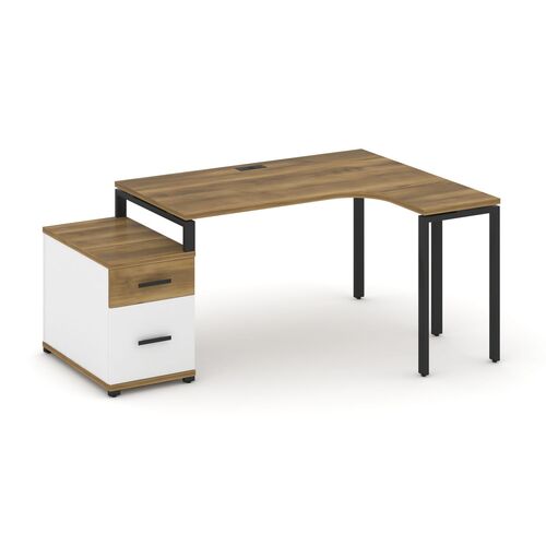 Стол эргономичный правый с опорной тумбой CN.SA-302(R) A/B/W Дуб Мали,м/к Черный
