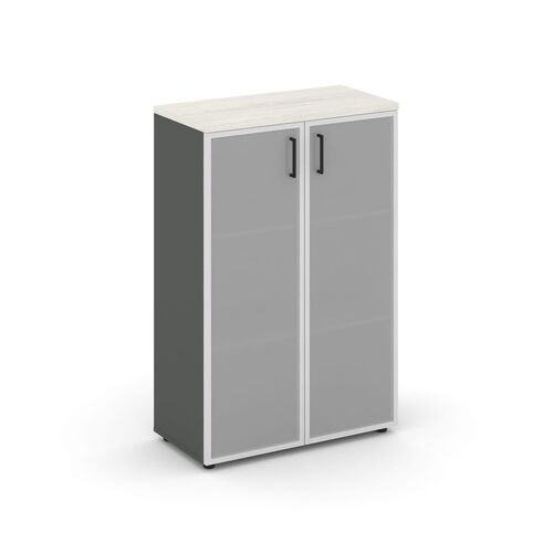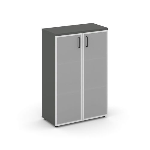 Шкаф средний широкий (2 низких фасада стекло сатин в раме) SN.STS-203 Антрацит