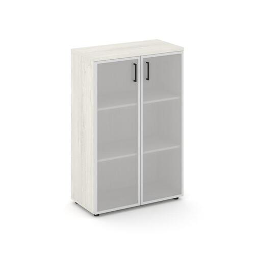 Шкаф средний широкий (2 низких фасада стекло сатин в раме) SN.STS-203 Белый
