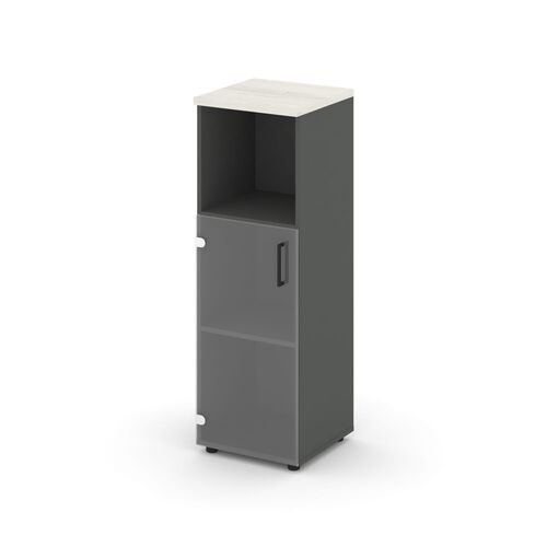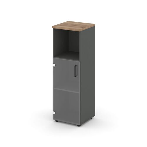 Шкаф средний узкий левый (1 низкий фасад стекло) SN.STU.E-202(L) Дуб Наварра