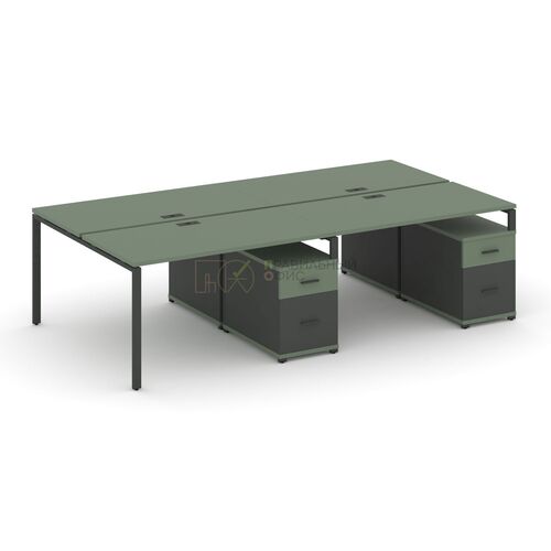 Рабочая станция на 4 места с двумя двухсторонними опорными тумбами CN.DRS-321 A/B/W